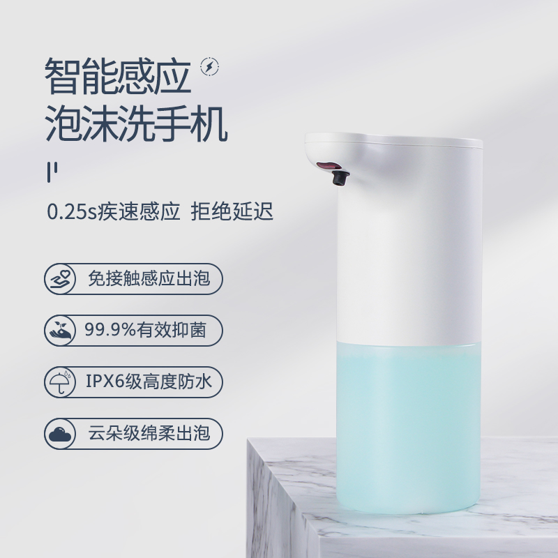 小泡泡感應(yīng)泡沫皂液器33605型號:G33605防水等級:IPX6主題:簡約時尚小泡泡 | 不止是泡沫器,更是浴室藝術(shù)功能介紹:第四代皂液器告別手動給皂,洗手進入自動泡沫新時代免接觸使用,讓每一次洗手更潔凈,呵護全家健康280ml皂液可替換設(shè)計,適用大部分給皂液空氣注入技術(shù),微米級豐盈泡沫氣泡比12:1靈動(Liteon)雙感應(yīng)技術(shù),超低功耗,USB可充電設(shè)計,6個月持久續(xù)航精密微型電機,能耗更低